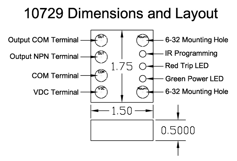 Model 10729 is a 5-24 VDC low cost g-force trip sensor. When a programmable g-force threshold is reached, a photo isolated output is pulled down(to common).