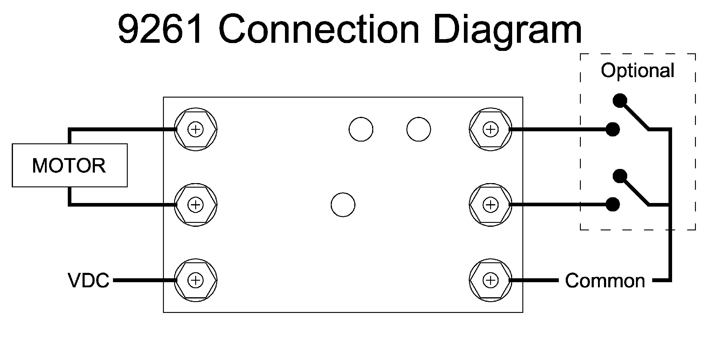 Model 9261 is fully programmable, set the interval of time the motor runs in forward, reverse, or idle. The internal current sensing can stop or change direction when a programmed limit is reached. Store up to 24 intervals with a minimum time interval of 100 ms. The intervals are ordered, providing motor control logic to fit almost any application.