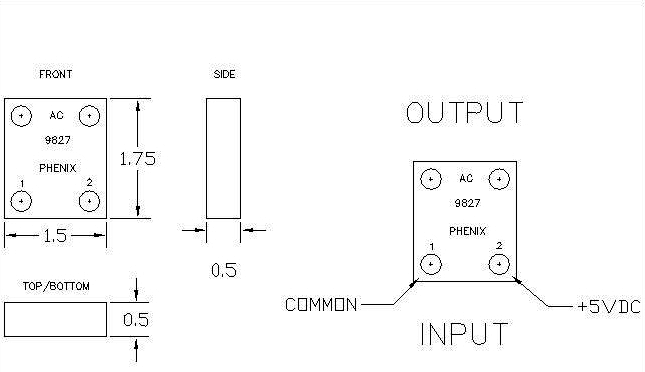 Model 9827 is a solid state relay, epoxy encapsulated, with no moving parts. The relay is available with zero crossing, which reduces high voltage transients. Inputs are fully protected from polarity reversal and have a 2500 volt isolation from input to output. Standard packaging features printed circuit board mounting.
