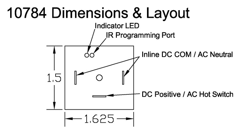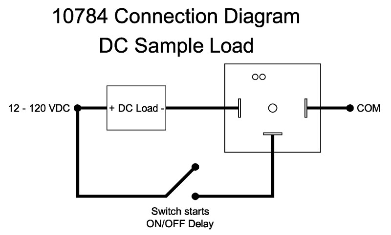 Model 10784 is a 12 to 120V ON / OFF delay inline timer. The inline solid state relay can switch AC or DC loads up to 3A. The minimum delay time is 100 ms (0.1s) and maximum delay is 10 seconds. The 10784 can be programmed as an ON delay or OFF delay timer. The delay interval and settings are transferred into the timer through an infrared programmer, providing complete isolation from switching current.