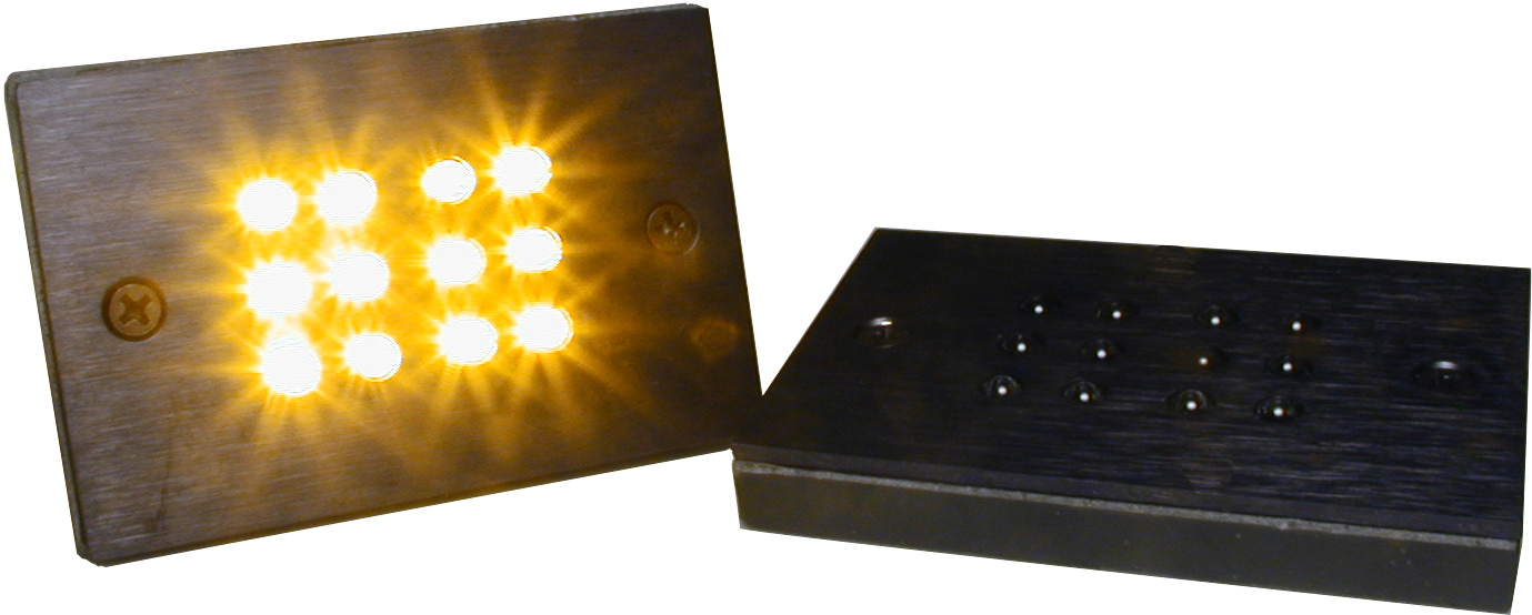 ProductAn array of 12 Ultra Bright LEDs arranged in 3 rows of independent circuitry that connects to the PT7, PT6, or PT5. Encapsulated in a protective epoxy and covered with a metal plate, this LED Warning light is designed for high reliability through tough batting cage conditions.