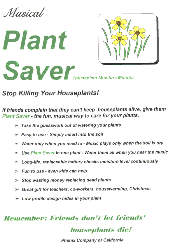 ProductThe Plant Saver plays music when your plants need to be watered.