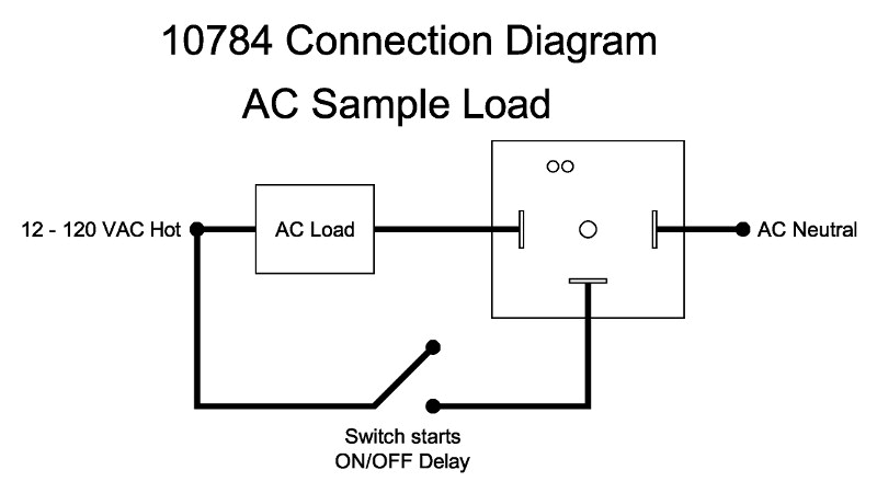 Model 10784 is a 12 to 120V ON / OFF delay inline timer. The inline solid state relay can switch AC or DC loads up to 3A. The minimum delay time is 100 ms (0.1s) and maximum delay is 10 seconds. The 10784 can be programmed as an ON delay or OFF delay timer. The delay interval and settings are transferred into the timer through an infrared programmer, providing complete isolation from switching current.